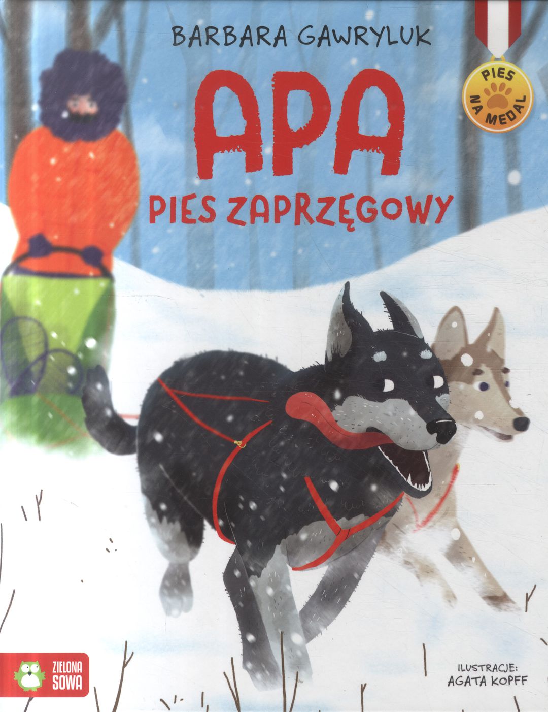 Apa : pies zaprzęgowy / Barbara Gawryluk ; ilustracje Agata Kopff. - Warszawa : Zielona Sowa, 2019. - 48 stron : ilustracje ; 24 cm.